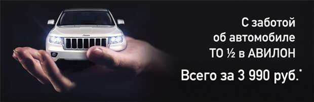 *Реклама. Не является публичной офертой. Стоимость ТО ½ за 3 990 руб. распространяется на модели: Cherokee IV (KL) 14-, Compass/Liberty MK 06-, Renegade (BU) 2,4