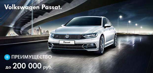 Только до 31 декабря при покупке Volkswagen Passat в АВИЛОНЕ Ваша выгода составит до 200 000 руб.*