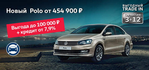 • Volkswagen Polo по специальной цене от 454 900 рублей.*